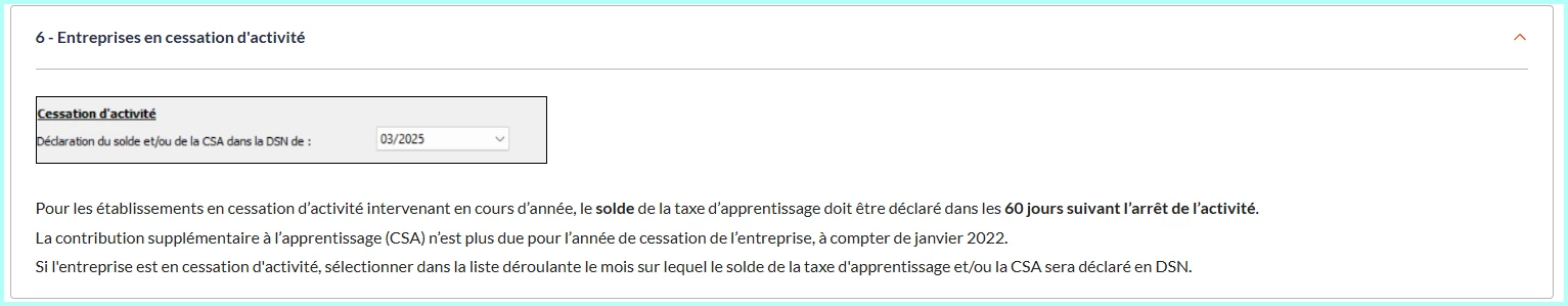Cessation d’activité au mois de mars 2026. Cependant, la déclaration 995 – solde du versement libératoire ne remonte pas dans le calcul de la DSN 03/2026, malgré la sélection du millésime 2025 et le renseignement du mois de cessation, suivis de la vérification du résultat et de l’apparition du montant de la taxe.