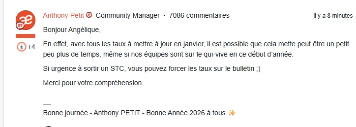 Bonjour, je vous comprends, mais il va falloir patienter. à ce niveau de MAJ et de paramétrage le client devrait comprendre. voici le retour d’