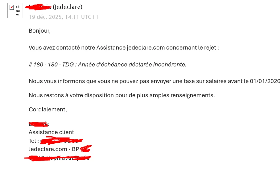 Taxe sur salaires 2025 PAS AVANT 01.01.2026 VIA EDI SUR JEDECLARE