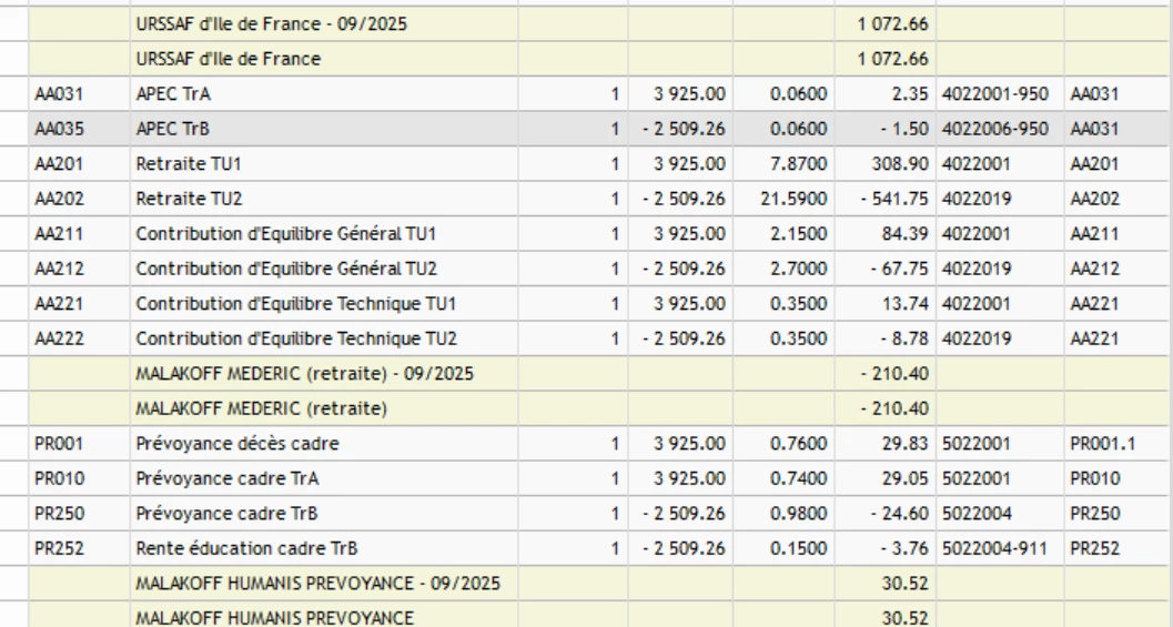 je ne comprend pas pourquoi pour un mandataire social, il se déclenche des bases négatives sur la tranche B, et la tranche A est atteint le PMSS pour la prévoyance et la retraite alors que le salaire brut est < au PMSS. Le salaire Brut est 1415.74€. Merci d’avance pour votre aide