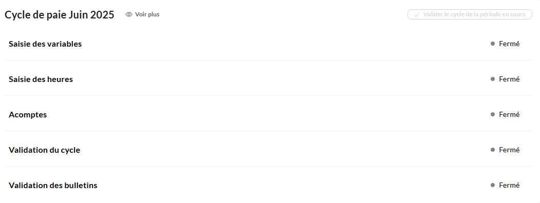 Bonjour, j’ai un client qui souhaite saisir dès aujourd’hui ses variables de paies du mois de juin afin que nous puissions établir ses bulletins avant son départ en congés. Le souci est qu’il ne peut pas avoir acc-s (voir copie écran) et ce malgré le paramétrage du cycle de paie qui ouvre ses accès au 5ème jour ouvré du mois.
