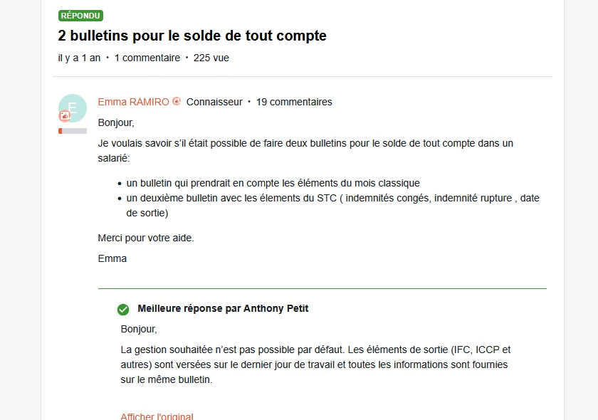 J’ai besoin d’établir 2 bulletins de paies sur le mois de sortie d’un salarié.