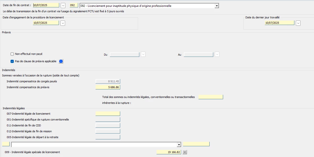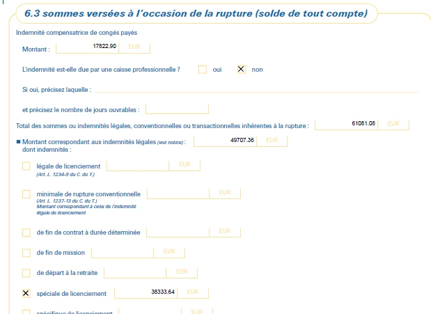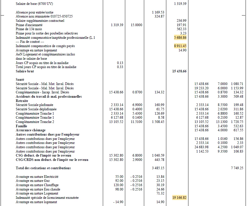 Les montants de préavis/congé/indemnité sont doublé par rapport à l’assistance de sortie et le bulletin.
