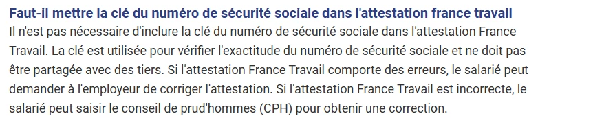 Je viens de remarquer que certaine informations ne remontent pas sur l’attestation France Travail :