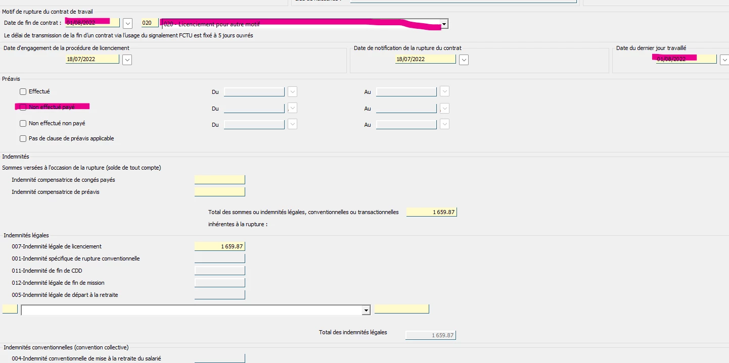 J’ai des dommages et intérêts et une indemnité de préavis (2 mois) à payer au salarié.