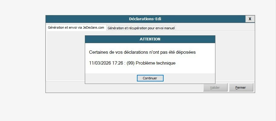 Je ne parviens pas à envoyer d’AER, ce message apparait,