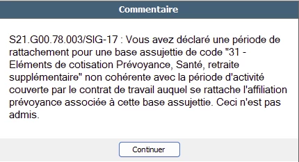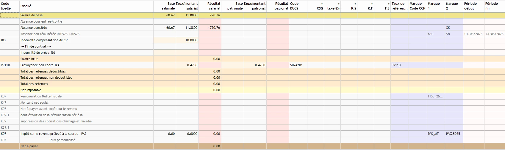 J'ai donc voulu refaire son bulletin de salaire de Mai (avant de faire la DSN de juin), mais une erreur, non bloquante, apparait lorsque je calcule la DSN de juin. Cela n'affecte en aucun cas son salaire du mois de mai, car elle était absente toute la période, donc salaire à 0. En calculant la DSN de juin, la coche régularisation du mois de mai est bien cochée.