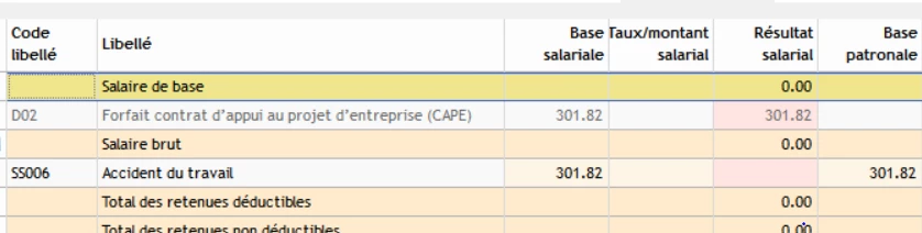 J’ai des bulletins CAPE, avec le plan de paie CAPE quand ils n’ont pas de rémunération :