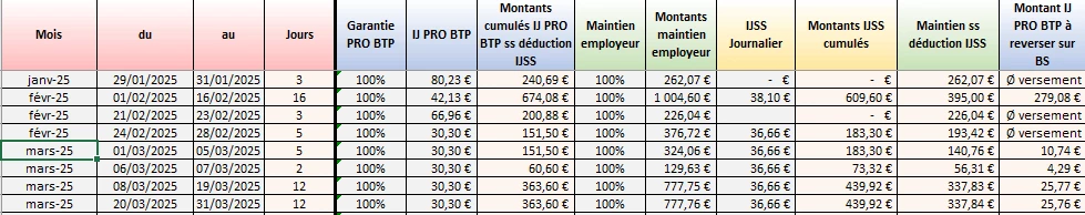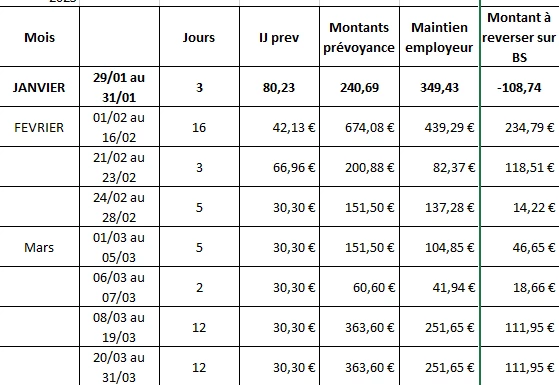 Nous faisons toujours un tableau de comparaison afin de savoir si nous devons reverser les IJ Prévoyance.