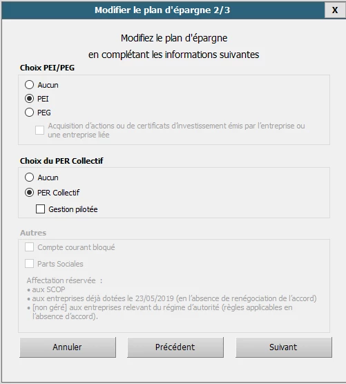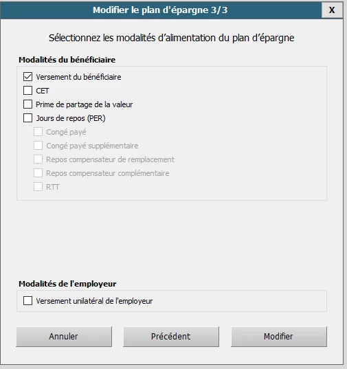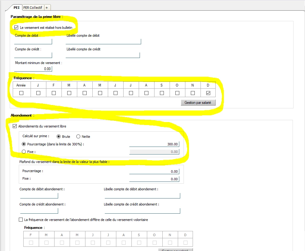 précédemment, j’effectuais cela via “traitement du mois”, “bulletin supplémentaire” et je sélectionnais “PEI - abondement mensuel plafonné (CSG/employeur, FS à 8%).