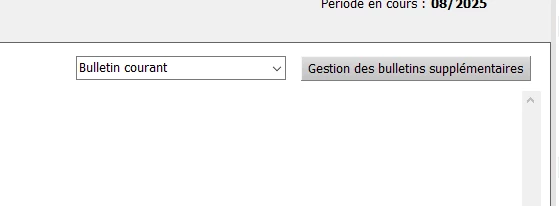 Enfin vous passez à la gestion des versements. De manière standard le versement est sur le bulletin courant. Si vous souhaitez faire un bulletin sup, alors il faut le créer (+ le sélectionner pour que cela s’affecte correctement)