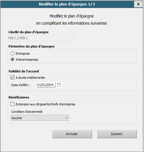 Il vous faut tout d’abord créer un accord d’épargne dans “Gestion des accords” comme ci dessous :
