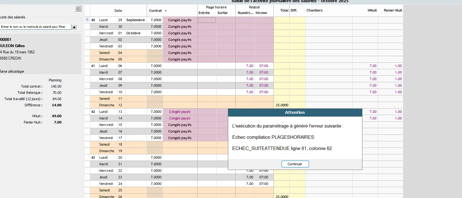Nous avons un message d’erreur qui est apparu