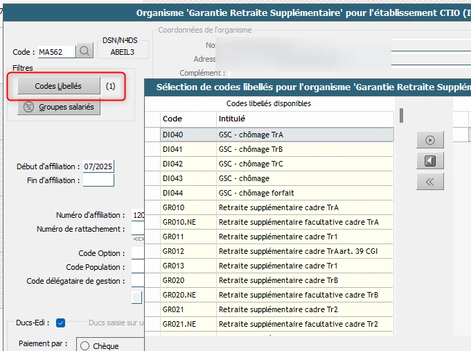 Est ce que quelqu’un sait pourquoi ? J’ai essayé de mettre un numéro d’affiliation plus élevé cela ne change pas. et j’ai imputé les codes libellés dans l’organisme