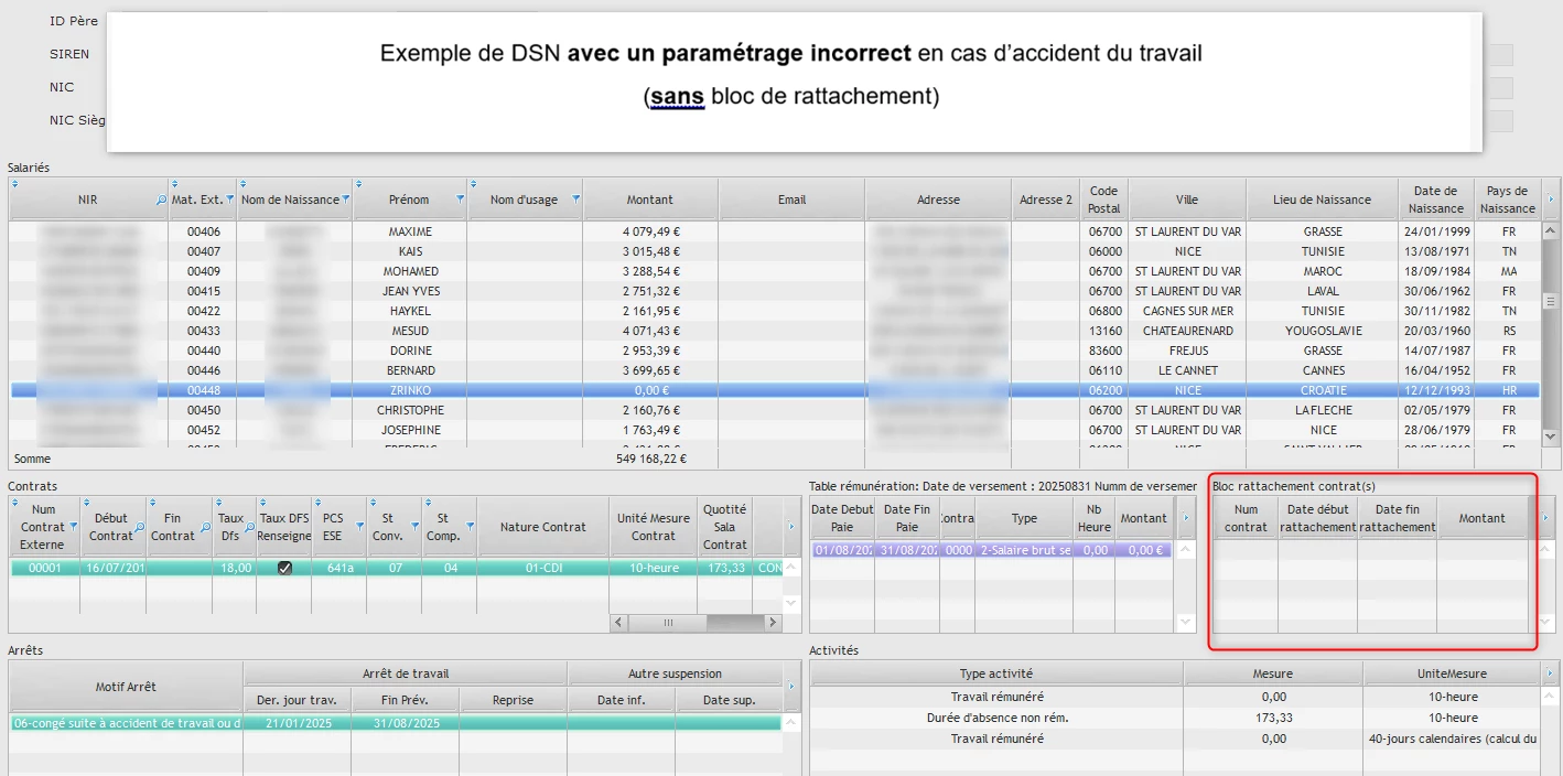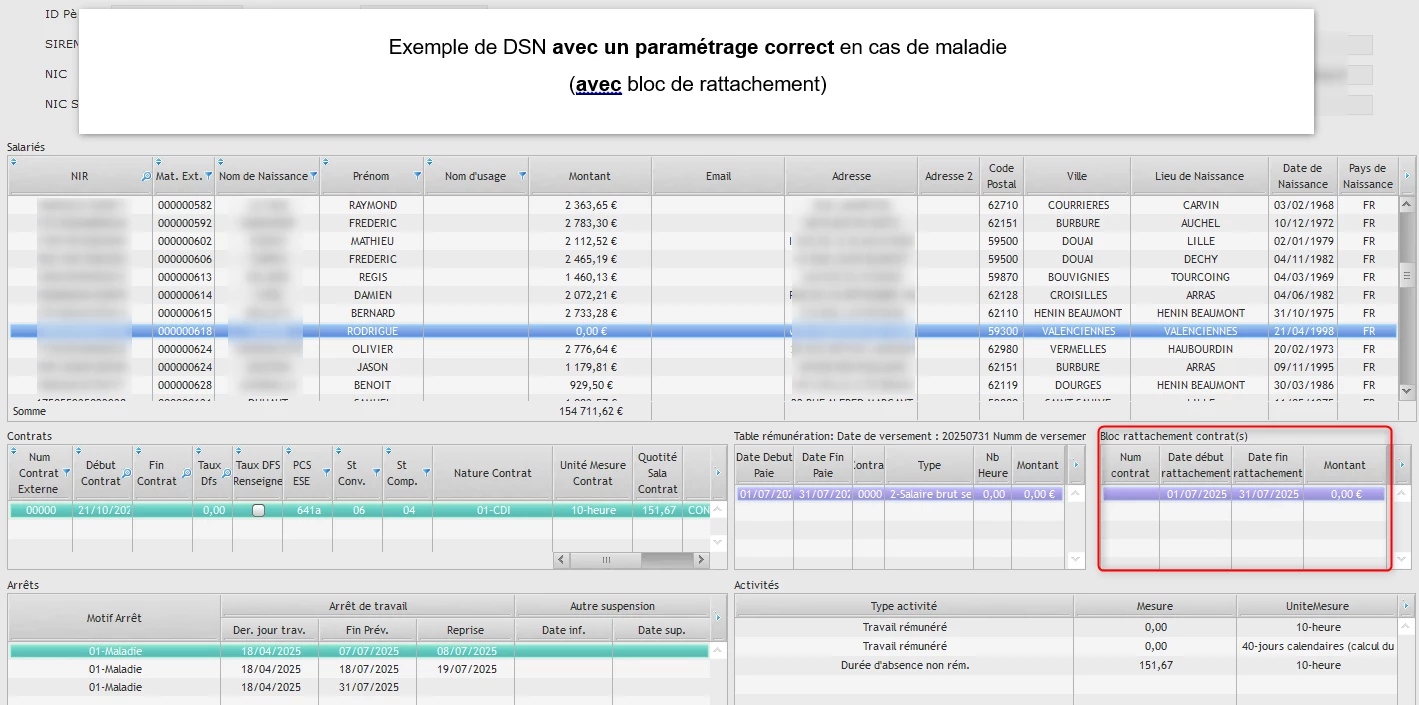 Il nous envoie 2 photos de dsn (correcte/incorrecte) mais je ne sais pas comment faire pour que le bloc qu’ils demandent soit complété.