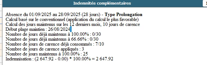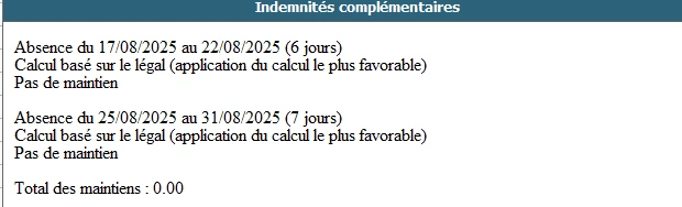 Y a t-’il une erreur de paramétrage ? l’indemnité complémentaire de septembre mentionne dans le commentaire un début de plage de maintien au 26/08/2024 alors qu’il est entré le 14/6/2025 et n’a jamais travaillé dans l’entreprise auparavant.