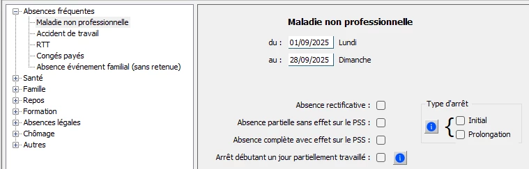 A noter qu’il a été en arrêt maladie initial du 17 au 22 aout 2025 (pas d’indemnité sur le BS d’août)