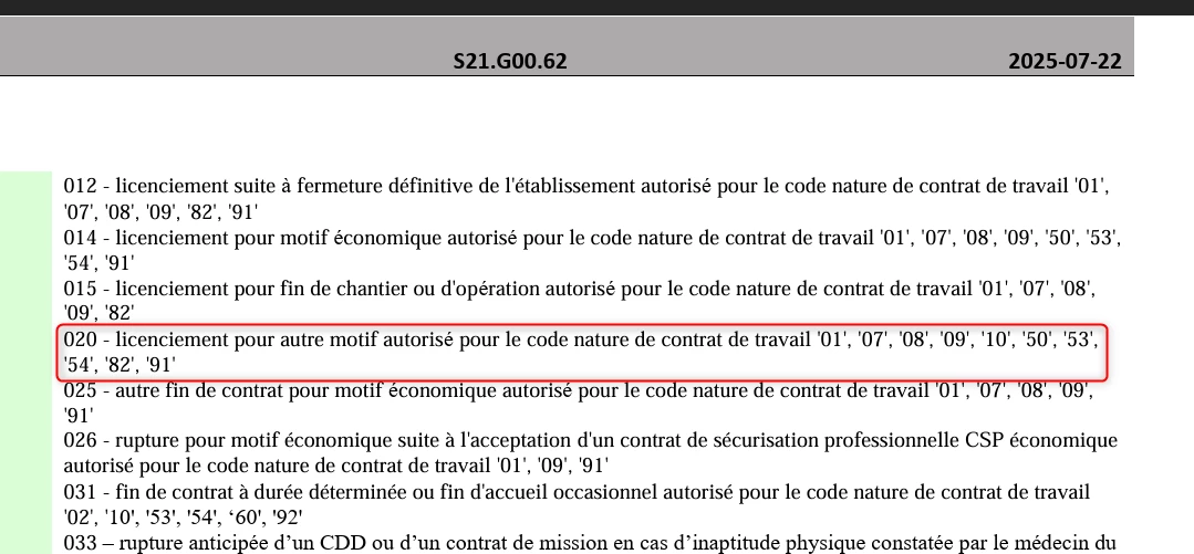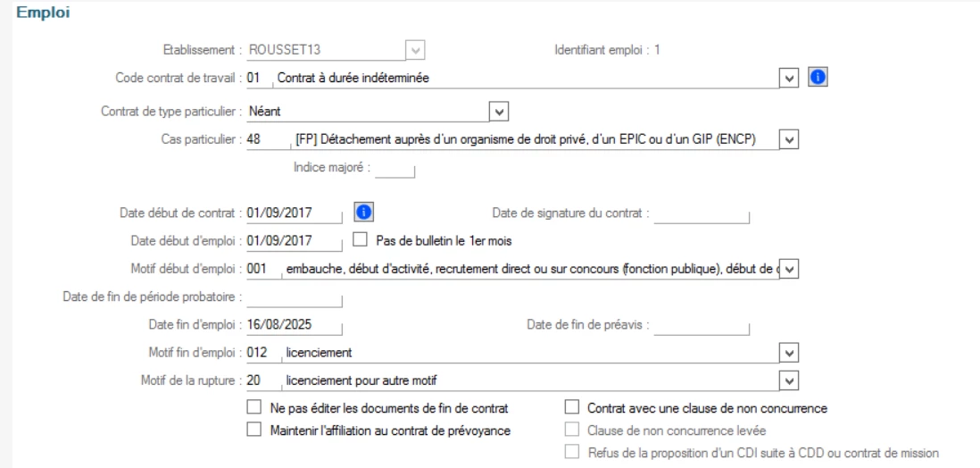 J’ai le message suivant: Modification dans l'attestation employeur, si absente, modification dans la Fiche Salarié et dans l'emploi archivé, veuillez saisir ou ressaisir un motif de la rupture de contrat de travail