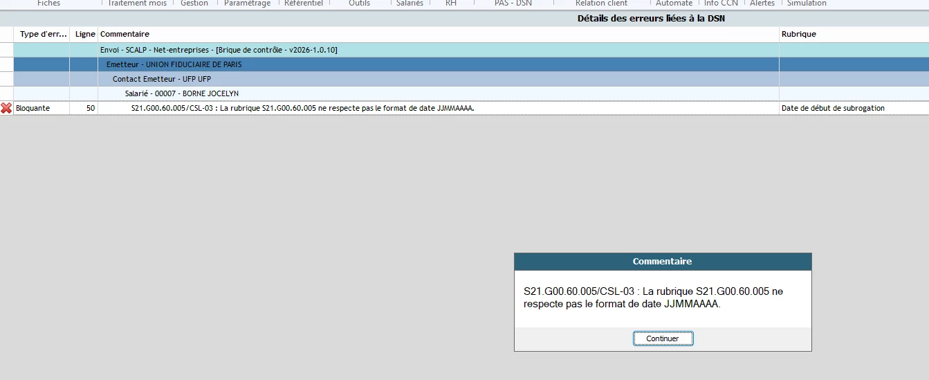 depuis quelques temps une anomalie bloquante lors de l’envoie de l’attestation mais les dates de subrogations sont bien renseignés