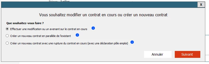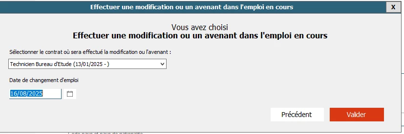 J’ai validé et uniquement changé le code contrat de travail car rien d’autre ne change.
