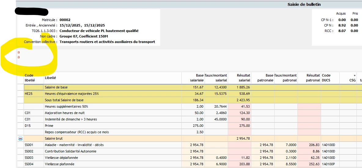 J’ai cet affichage (a / a) sur un dossier “transport” que je saisie ce jour…