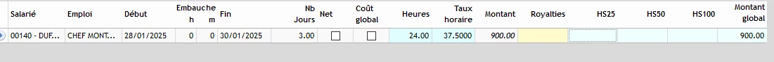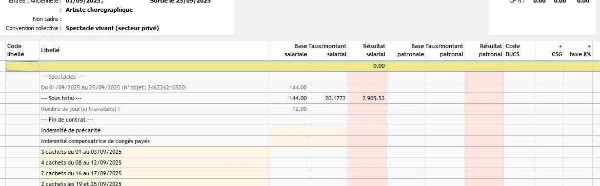 j’essaie de faire un bulletin pour un intermittent, en premier lieu je suis allée sur module du spectacle