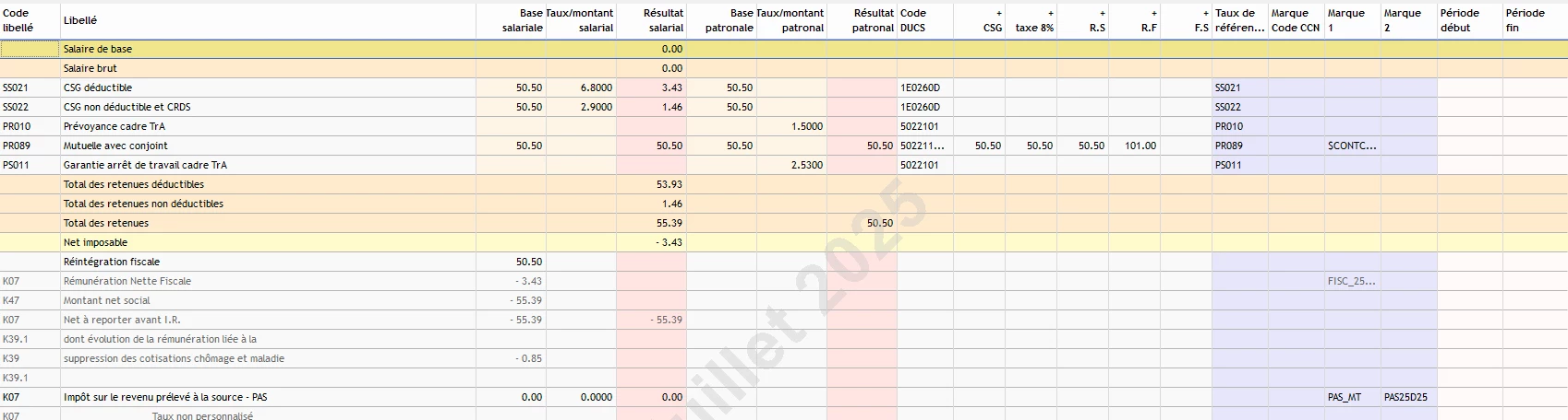 le bulletin va constater la part patronale de mutuelle, la CSG/RDS qui va dessus et qui est à la charge du mandataire.