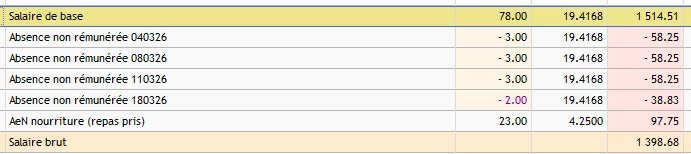 Alors que pour le 13-14/03, il n’y a que le samedi 14/03 du week-end (week-end d’absence non complet, non entouré d’absence), donc uniquement prorata sur le 13/03, normalement travaillé.