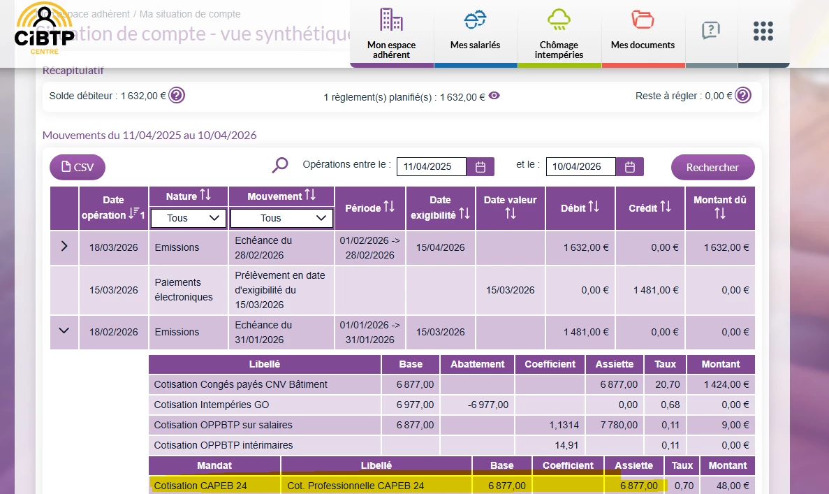 La CAPEB DORDOGNE appelle sa cotisation sur la base non majorée.