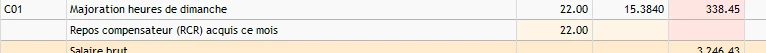 Lorsque nous indiquons les majoration de dimanche, les RCR s’ajoutent automatiquement.