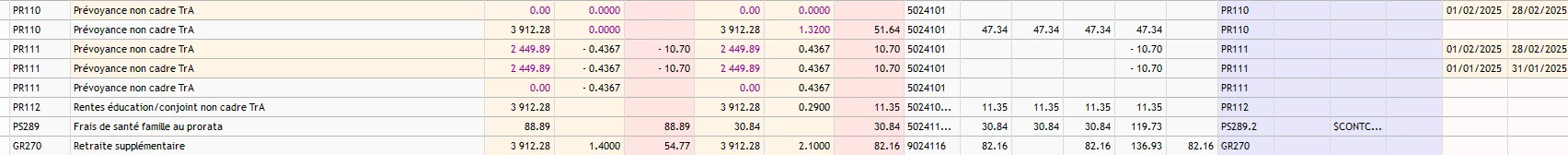Silae dans les taux conventionnels pour les cadres PR050 Prévoyance cadre TrB+TrC a mis 0.218 taux patronal et pour les non cadres 2.18 (PR150)