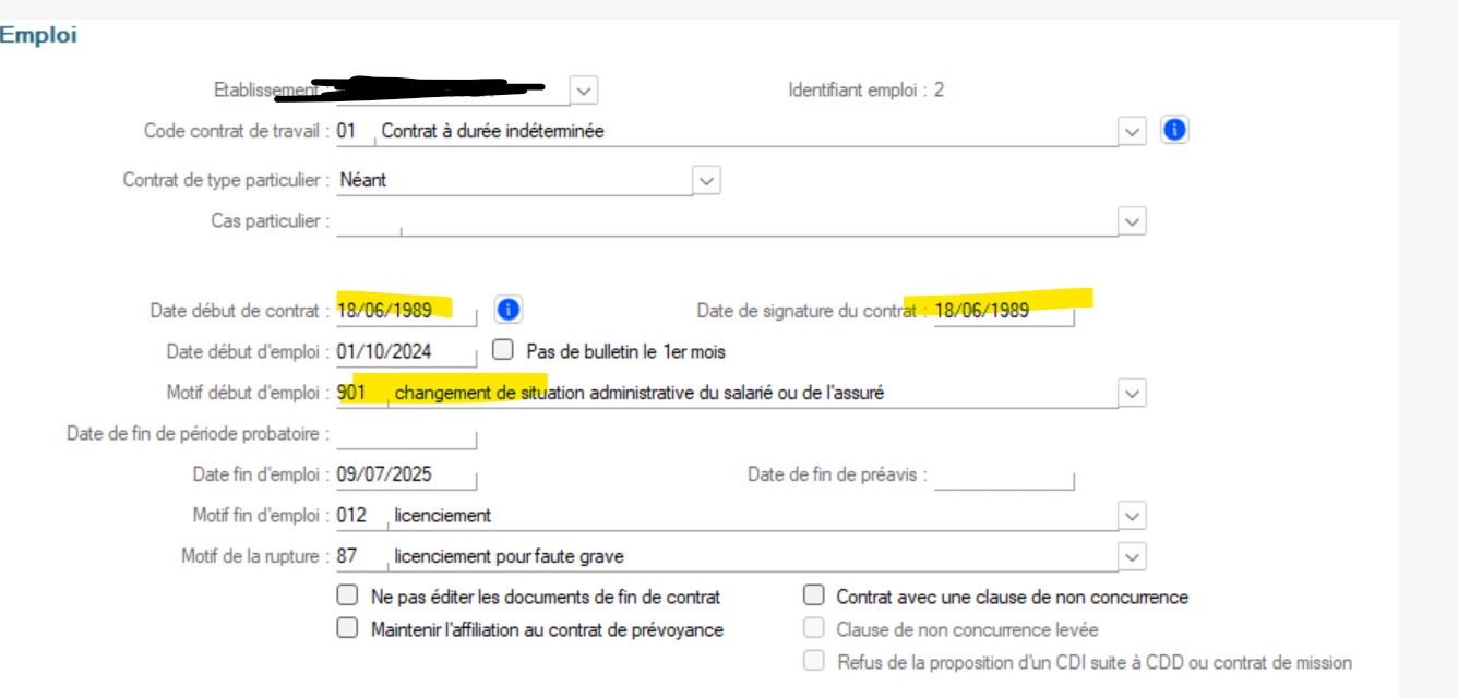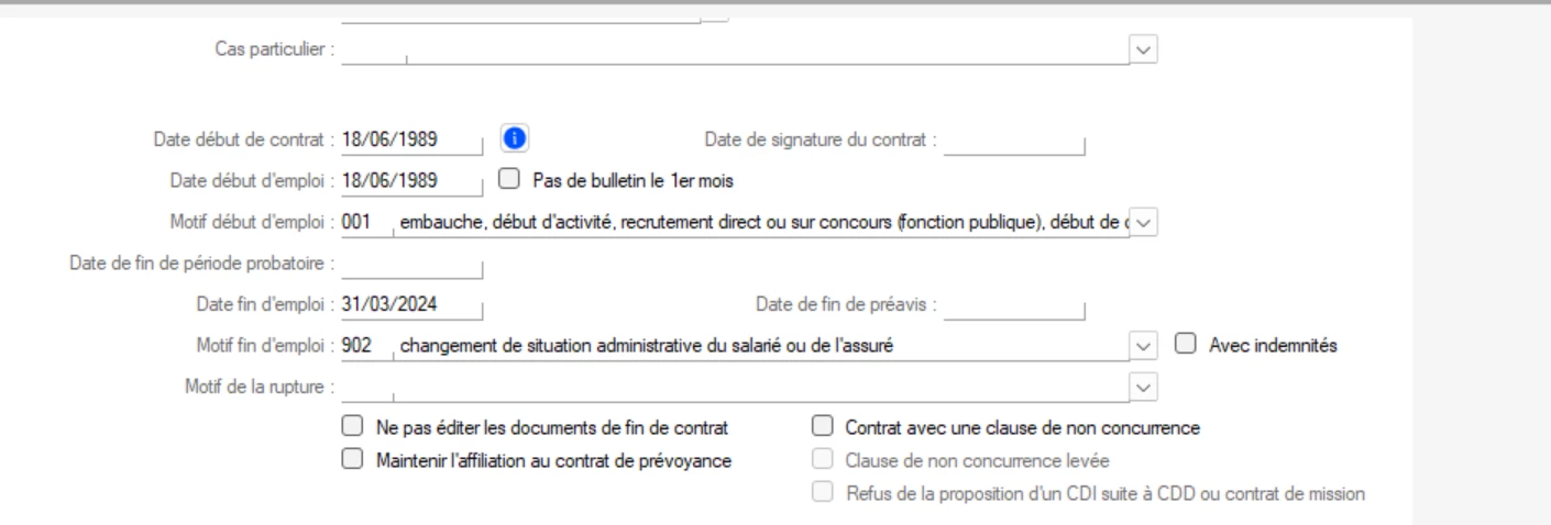 un des salariés qui a été transféré quitte maintenant la société et ses documents de sorti sont erroné