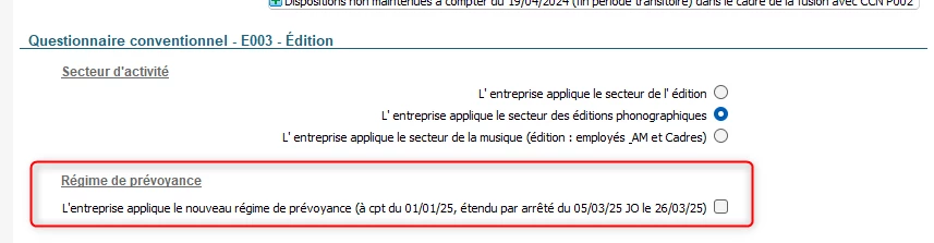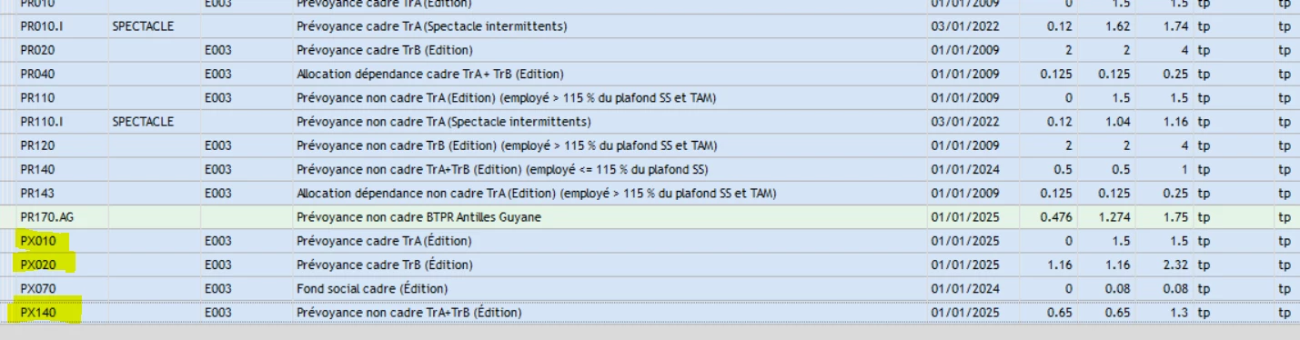 Il y a un changement au niveau des taux prévoyance pour la CCN Edition E003.
