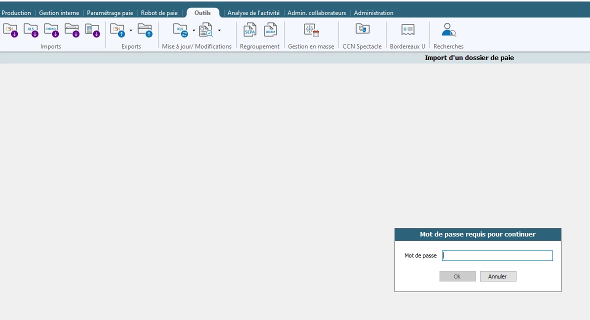 Je bloque sur le mot de passe - je tape ”import et le nom de mon cabinet”, rien se ne passe