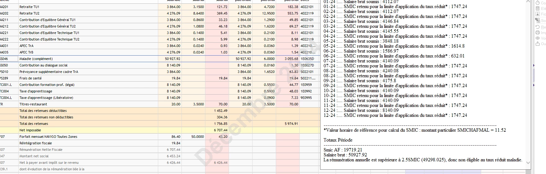 Vous avez pris en compte une base erronée pour la détermination de l’assiette du complément maladie au 31/12/2024 et 31/12/2023.