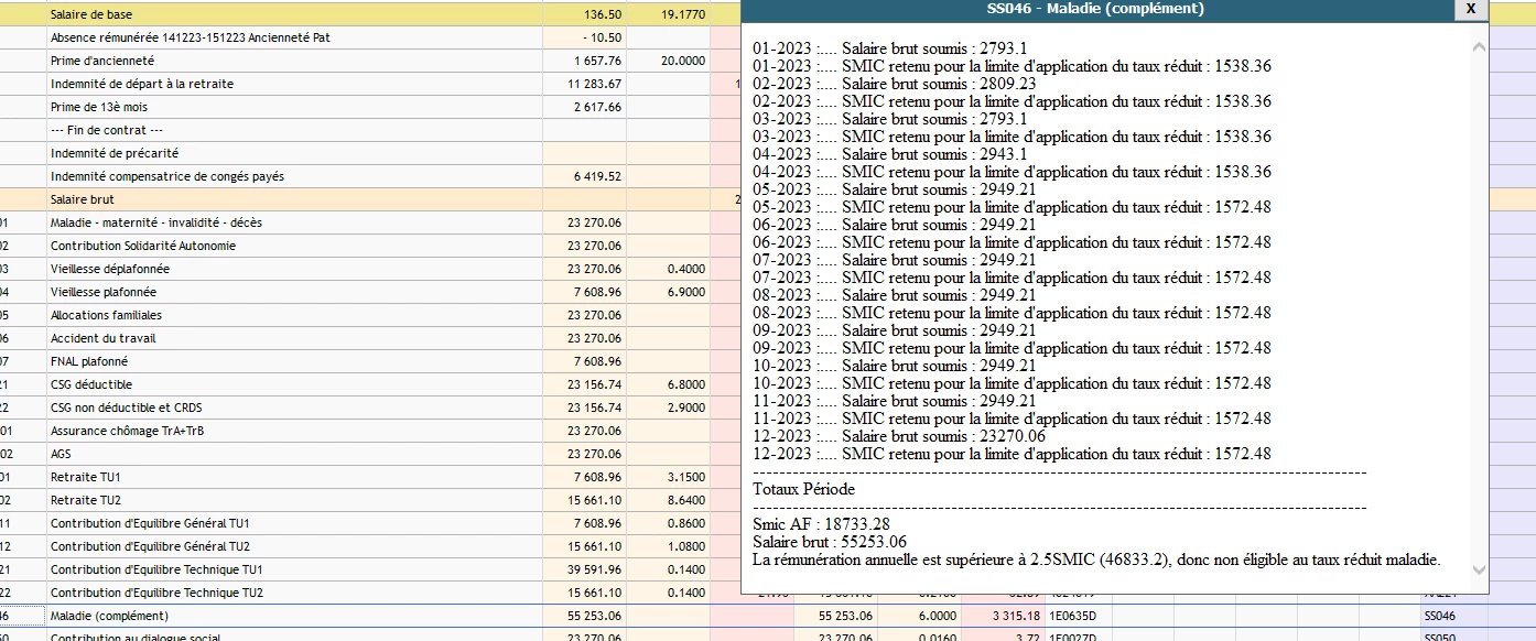 Dans les faits : la rémunération annuelle est supérieure à 2,5 SMIC, Silae déclenche la ligne cotisation complément maladie sur la totalité de la base brute annuelle, or le contrôleur me dit que la cotisation doit être appliquée que sur le delta entre les deux seuils (la rémunération annuelle et le seuil de 2,5 SMIC).