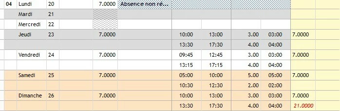 Y a t’il une explication du total de la semaine à 21h au lieu de 28 ?