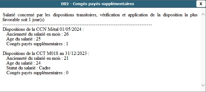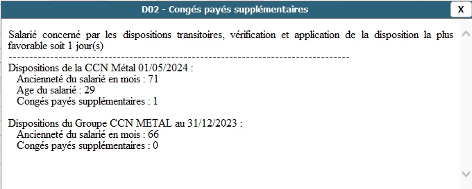 Sur un dossier et dès mai 2024 l’année d’entrée de la CCN unique le jour supplémentaire se déclenche mais sur un autre dossier le jour supplémentaire (pour salarié en forfait) ne s’est déclenché qu’à partir de mai 2025.