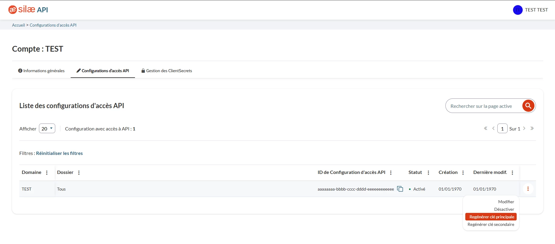 Pour information, je retrouve bien sur Silaé les informations liées aux deux premiers champs « ClientID » & « Client Secret », cependant je ne sais pas ou trouver l’information relative à la « Clé de configuration d’accès API »,