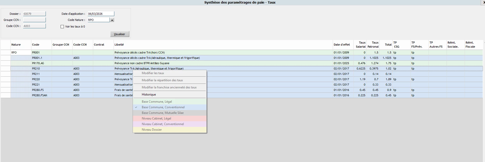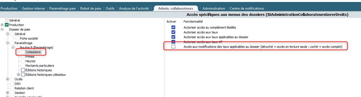Après vérification, vous n’avez pas les droits pour modifier les taux applicables au dossier.