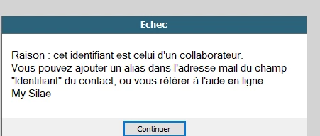 Vous utilisez une adresse mail d’un collaborateur ayant un contact sur Silae:
