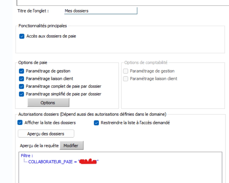Je ne trouve pas la fiche explicative pour créer un onglet “MES DOSSIERS” pour un nouveau gestionnaire paie dans notre cabinet. En effet, pour l’instant, il a seulement l’onglet “PRODUCTION” avec tous les dossiers et il doit faire un tri avec son identifiant de collaborateur paie.