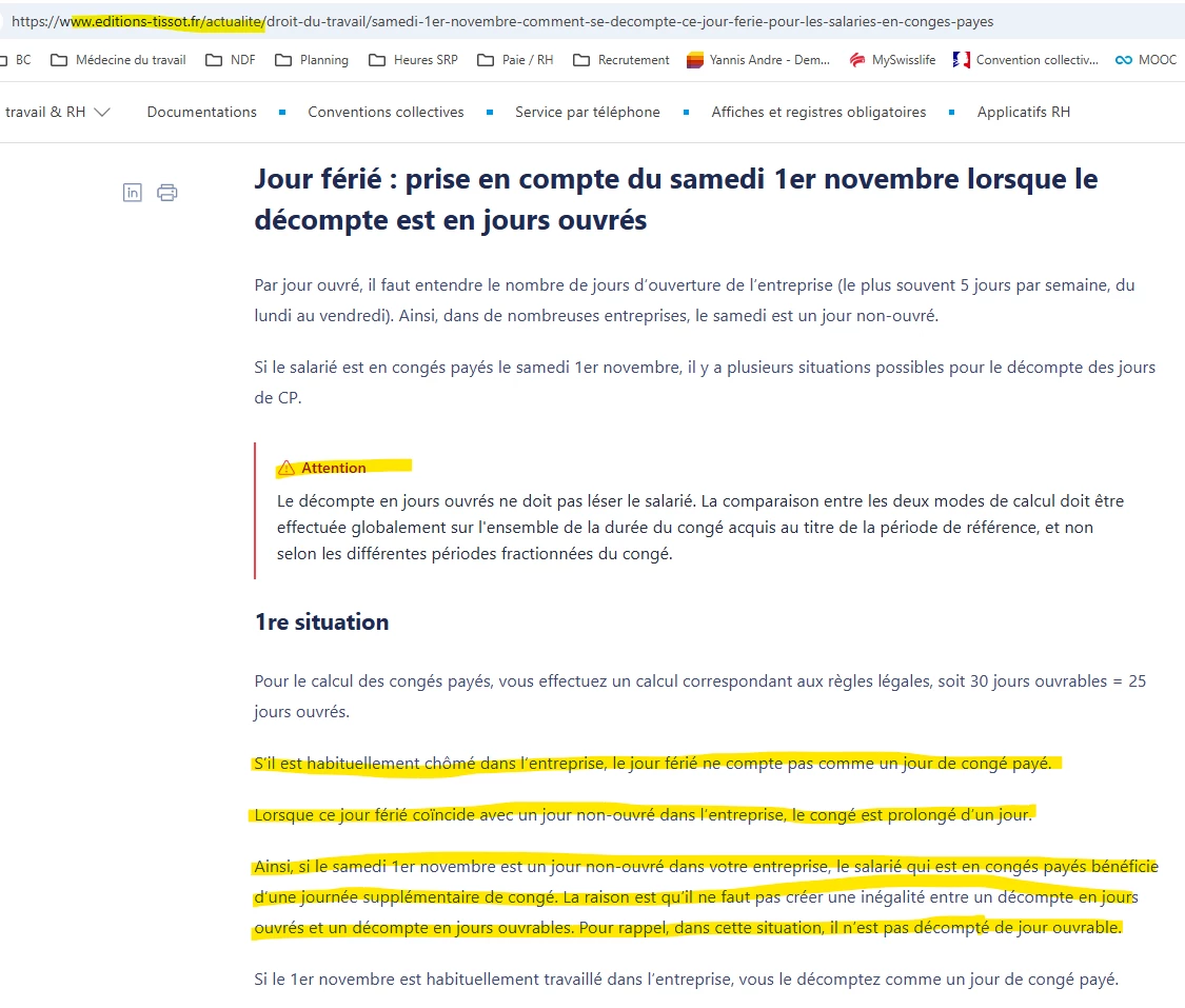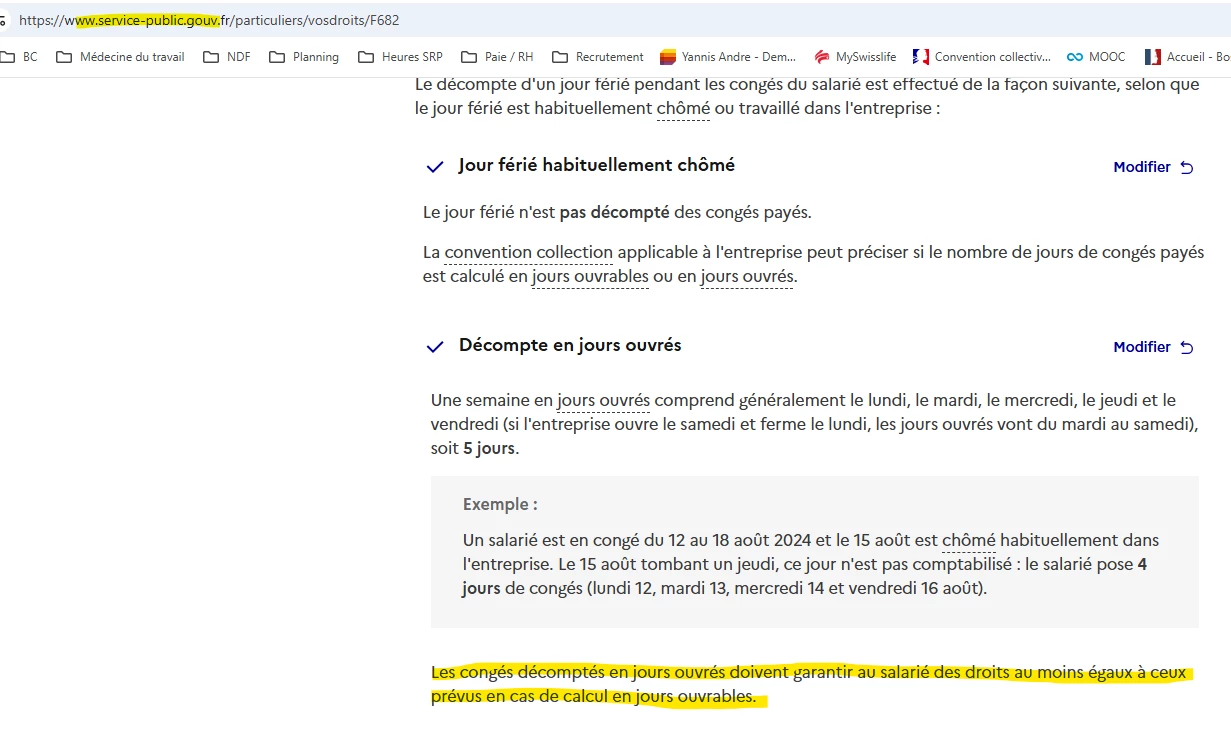 Pour un salarié qui était en congès du 8 au 17 août le logiciel lui décompte 8 jours au lieu de 7 jours car le 15 août est un jour férié il ne devrait pas être d’compté. Pour les autres salariés de ce dossier le calcul se fait bien et ne compte pas le 15 août.