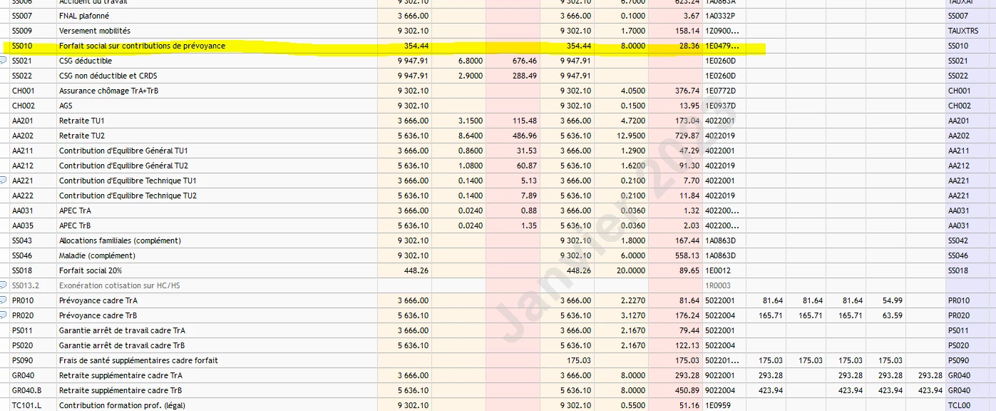 Existe t ‘il une édition pour le détail du forfait social sur contribution de prévoyance ?