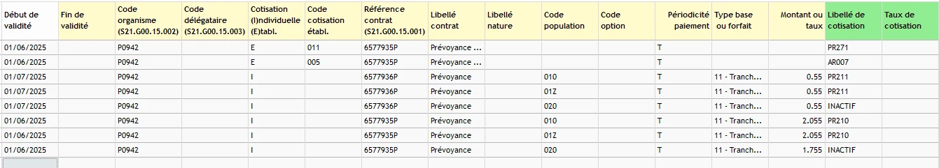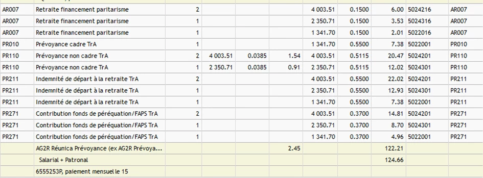 Nous avons pourtant revu notre paramétrage, qui semble correct au puisque les cotisations remontent bien en paie, et dans le détail des cotisations sur le bon organisme :
