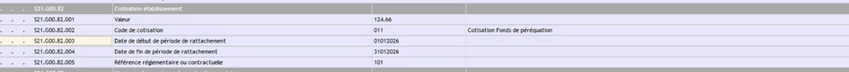 Cependant un seul bloc 82 remonte en DSN avec la cotisation Fonds de péréquation, mais avec le montant incluant la contribution paritarisme :