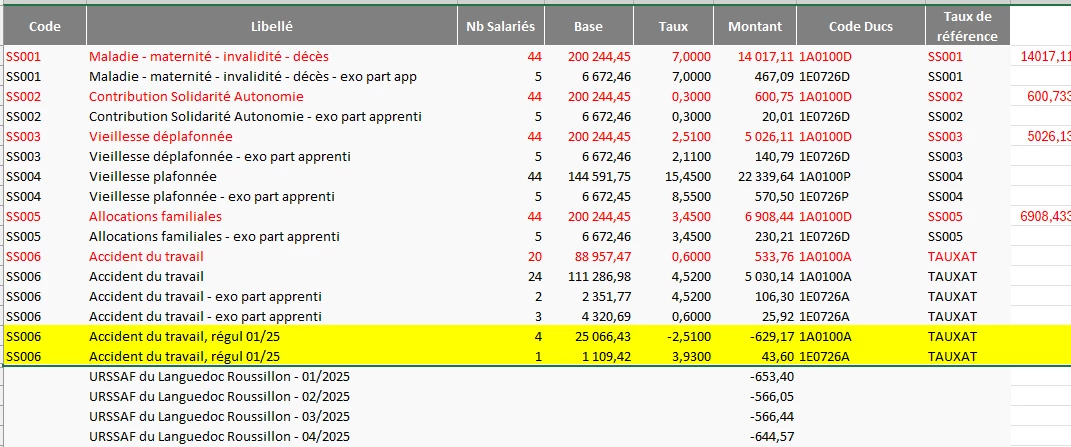 J’ai fait des régul sur le taux AT mais tout à l’air Ok à ce niveau là