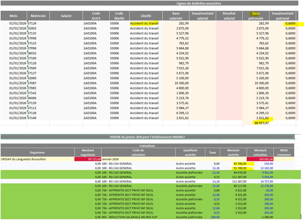 Je ne comprends pas j’ai des écarts entre ma base tableau de charges (88 957.47€) et celle qui remonte en DSN (91 740) et je ne sais pas d’où ça vient ni comment la régulariser ???