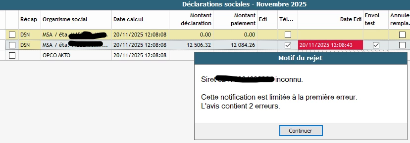 Bref je pense avoir pensé à tout, j’ai alors voulu lancer une DSN TEST pour m’assurer que tout était OK mais apparemment NON…