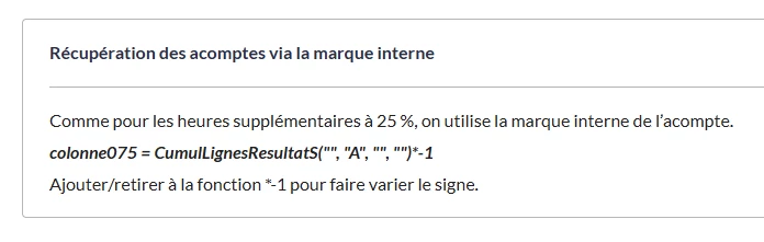 Dans l’aide en ligne suivante, vous avez le descriptif de la fonction a utiliser pour récupérer les acomptes :